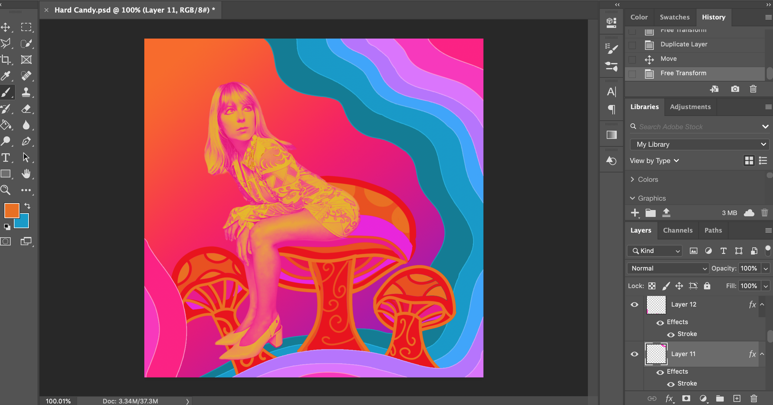 Camilla’s Quick Tip: If you’re having an artist’s block or don’t know what to create, search up some images by an artist you love (mine are Peter Max and Andy Warhol) and draw inspiration from their choice of colours, styles and elements.
